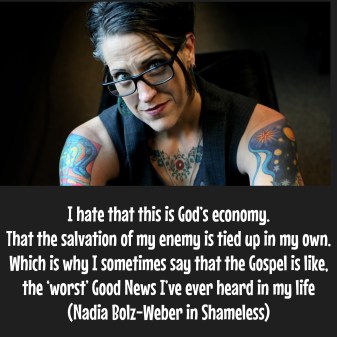 At the top of my reading list at the moment is the wonderfully tattooed American Lutheran Priest Nadia Bolz-Weber. She is a little bit off the wall – after all her twitter handle is @SarcasticLuther – but she reaches straight to your heart with her words and her reflections on her experiences. Do read her most recent book Shameless.