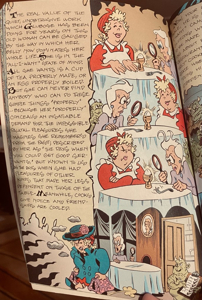 The real value of the quiet, unobtrusive work which Glubose has been doing for years on this old woman can be gauged by the way in which her belly now dominates her whole life. The woman is in what may be called the ‘All-I-want’ state of mind. All she wants is a cup of tea properly made, or an egg properly boiled, or a slice of bread properly toasted. But she never finds any servant or any friend who can do these simple things ‘properly’ – because her ‘properly’ conceals an insatiable demand for the exact, and almost impossible, palatal pleasures which she imagines she remembers from the past; a past described by her as ‘the days when you could get good servants’ but known to us as the days when her senses were more easily pleased and she had pleasures of other kinds which made her less dependent on those of the table. table. Meanwhile, the daily disappointment produces daily ill temper: cooks give notice and friendships are cooled. If ever the Enemy introduces into her mind a faint suspicion that she is too interested in food, Glubose counters it by suggesting to her that she doesn’t mind what she eats herself but ‘does like to have things nice for her boy’. In fact, of course, her greed has been one of the chief sources of his domestic discomfort for many years.