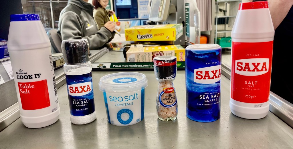 But even when the shopping list is simple and direct it can be a maze of choices and a challenge to even the most experienced of shopaholics. Take salt for example. What could be more simple than that you may ask. But it is far from an easy item to buy. Let me count the ways….