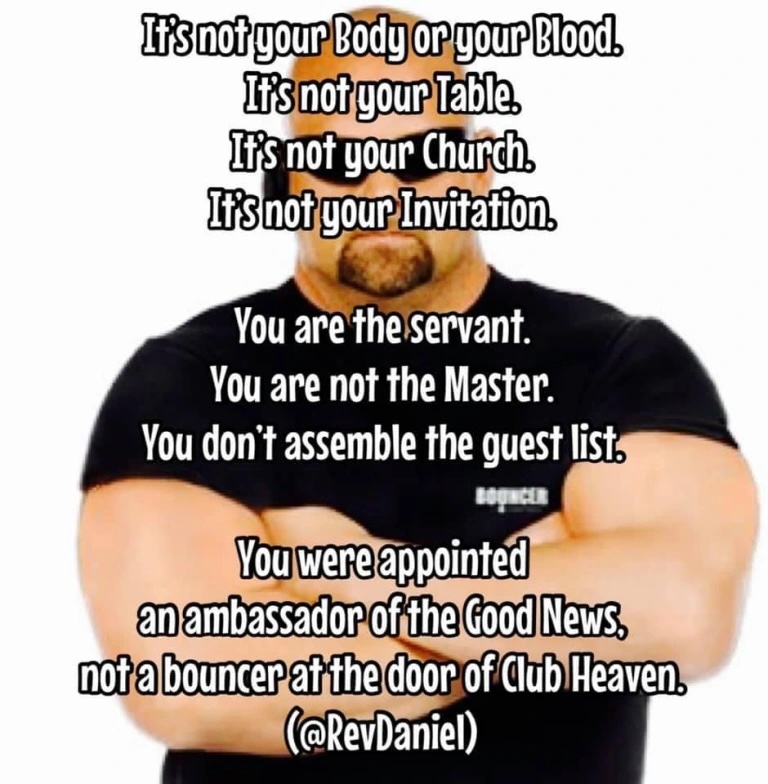 You were appointed an ambassador of the Good News not a bouncer at the door of Club Heaven.
