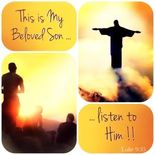 This is my Son, whom I have chosen; listen to him.’ No doubt left. The words spoken at the Baptism in the Jordan are repeated and now have a command is added to them for us to obey regardless of our fear of God’s presence in the cloud at the Transfiguration or the darkness that awaits as we travel with our Beloved Redeemer whose face is set on the road towards dark Gethsemane.