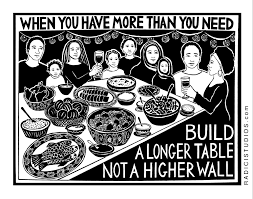 I think Fynn’s mum had a motto for mealtimes and for her home, ‘There’s always room for one more’. One that served her, her family, and Anna well. When we learn to ‘shove up a bit’ to make room for another mouth at the dinner table we may end up with less food on our plates but our hearts and souls will be more replete.