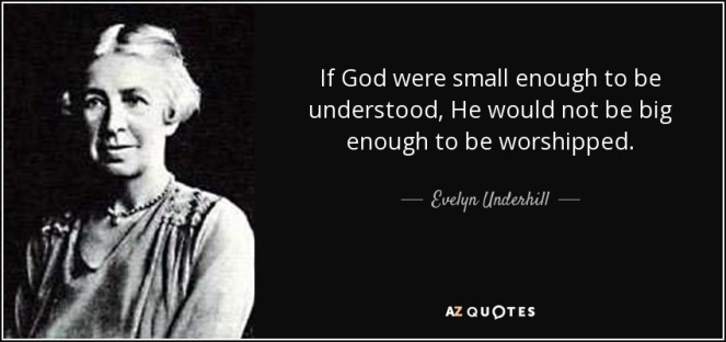 ‘If God were small enough to be understood, He would not be big enough to be worshipped.’ (Evelyn Underhill)