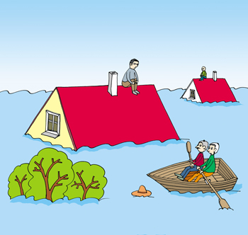 A Police Officer came by in a rowing boat and the fellow shouted to the man on the roof, ‘Jump in, I can save you.’ The stranded fellow shouted back, ‘No, it’s OK, I’m praying to God and he is going to save me. I have faith.’ The Police Officer rowed away looking for others to help.